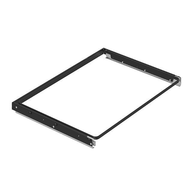 Выдвижная рама с доводчиком для мелкосетчатых металлических и пластиковых корзин.- Легкая установка между двумя вертикальными стойками на кронштейны полок 435 мм, инструменты при этом не требуются.