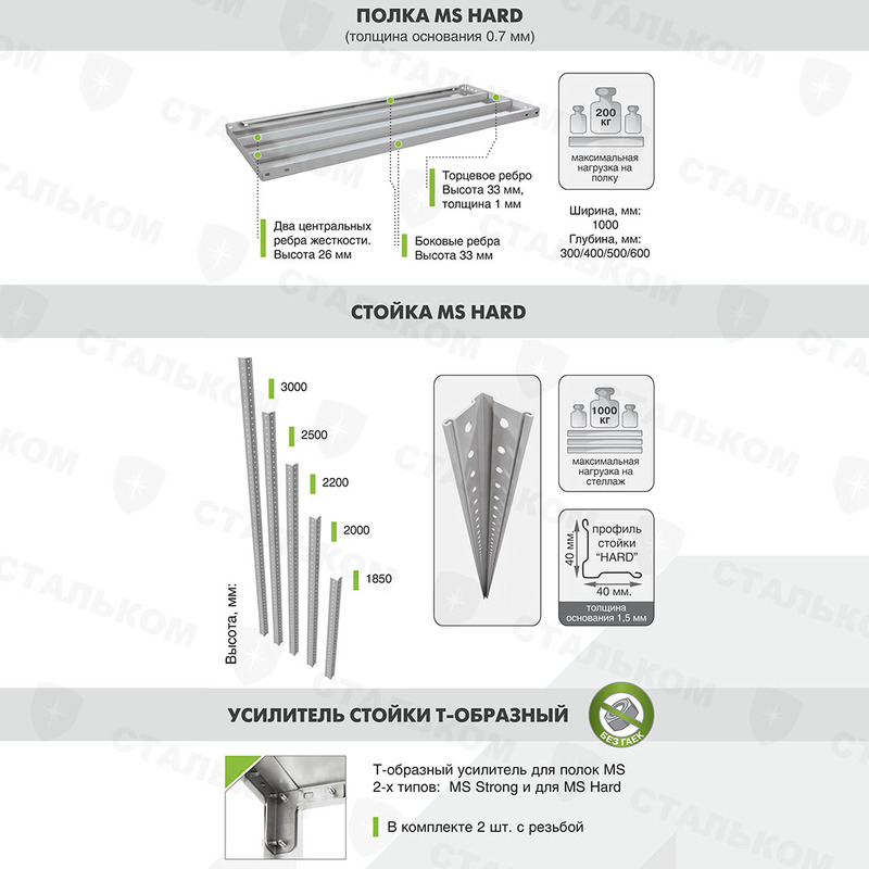 - Стеллаж MS Hard, 1000 кг на секцию
