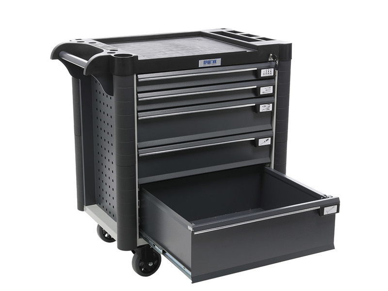- Топ (пластик черного цвета) оснащён ложементами под инструменты для организации, хранения и удобства использования во время выполнения работ. Нагрузка на ТОП – 30 кг