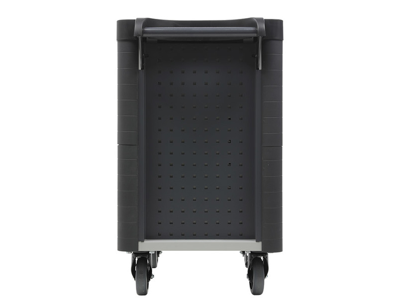 - Перфорированные боковые стенки тележки, позволяющие размещать на них аксессуары (навеску для экранов)