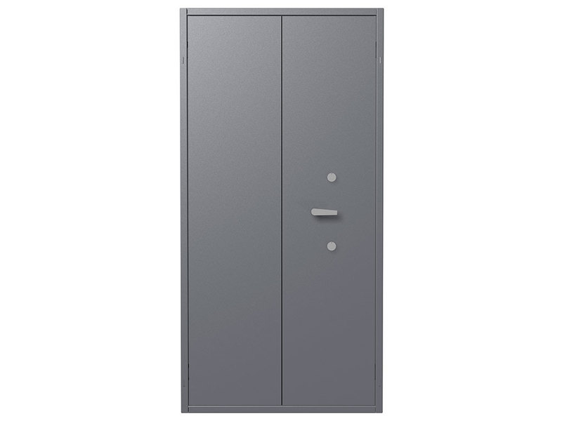 - Комплектуются двумя ключевыми сувальдными замками класс 2 ГОСТ 5089-2011 (по 2 ключа от каждого замка в комплекте) с опечатывающими устройствами. Поворотная ручка для удобства открывания и закрывания. Левая створка двери оборудована двумя подпружиненными самозапирающимися защелками (вверх и вниз) с приводом от ручки находящейся на внутренней стороне створки двери.